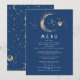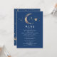 Starry night and crescent moon navy blue and gold wedding menu cards