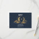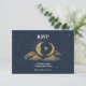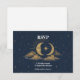 Elegant celestial wedding RSVP card featuring a gold moon and stars over a navy blue night sky. This 'written in the stars' response card is the perfect match for your celestial wedding invitation. Easy to customize with your reply date.