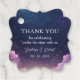 Send your guests home with a heartfelt thank you wrapped in celestial beauty. This elegant wedding favour tag features a dreamy navy and violet starry night sky background with soft clouds and romantic script. Perfect for cosmic, stargazing, or night-sky themed weddings, this favour tag is a beautiful way to say "thank you" for celebrating under the stars. Easily personalise with your names and wedding date for a magical finishing touch to your favours.