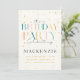 Featuring a cascade of falling stars in shades of gold and colourful vintage font, this invitation design brings an enchanting celestial touch to your event.