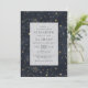 An elegant celestial design of twinkling gold stars dotting a deep midnight blue night sky provides the background for the dark blue text on a white rectangular screen. The night sky design is repeated on the back of the card.