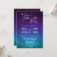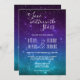 Celestial wedding invitations features script typography saying, A Love Written in the Stars, with purple, blues, and aqua night sky with twinkling stars Wedding Invitation.