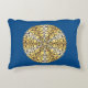 A lace-like concentric circle mandala in dark blue with bright blue and gold star-like dots spangled among the layers and a bright sunburst gradient circle behind makes for a fun design that brings to mind a starry night sky and a bright sunny day with one image.