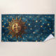 Amid a starry celestial background, the serene face of a stylized golden sun.