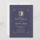 Celestial gold sun and frame on a purple background. Magical design perfect for a starry occasion. A fun astrology, horoscope, zodiac, celestial themed bachelorette trip invitation.