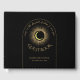 Celestial mystical personalised wedding guest book featuring arch frame with crescent moon and other astrological symbols in black and golden colours and written quote "CAUSE IN THE SKY FULL OF STARS I SAW YOU". This guest book is easily editable. If you need help with the customisation of this card or you need more matching products for this collection kindly message me via Zazzle.