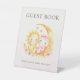 Guide guests with this celestial baby shower guest book sign featuring a sweet sun and moon watercolor illustration. Soft florals, gentle pastel tones, and clean typography create a warm and inviting display. Perfect for asking guests to sign their names or leave a message. A charming coordinated piece for your celestial baby shower stationery collection.
