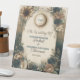 Welcome guests under the stars with this celestial inspired wedding sign. Showcasing a glowing sun and moon framed by teal and taupe florals, this artwork radiates ethereal warmth and boho elegance. Perfect for a cosmic outdoor ceremony or rustic evening celebration.
