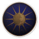 Classy and unique sun and peaceful man on the moon celestial brass bas relief graphic, with a peaceful hand drawn man-on-the-moon face, and sun rays, over a starry night sky.