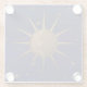 Classy and unique sun and moon celestial brass bas relief graphic, with a peaceful hand drawn man-on-the-moon face, and sun rays, over a starry night sky.