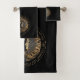 An elegant ancient ethereal sun moon stars towel set that can be customised with your own favourite quote or your name. Black background.