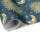 Celestial Sun Moon Stars Blue Gold Tarot Wrapping Paper
