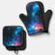 Pretty pink and blue stars swirling against the night sky, oven mitt and pot holder set. Customise your name on the front of each.