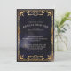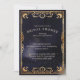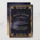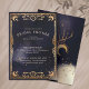 Beautiful holistic and spiritual tarot card style bridal shower invitation design. The design features our own hand-drawn holistic sun and moon tarpt card design in faux gold glitter. The design is created with intricate and decorative details. The background features a bold navy blue and gold design with twinking faux gold stars. Customise with your monogram, bride's name, event details, and time. The reverse side features a bold navy blue ink background with faux gold accents along with a gold moon design element.