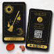 A beautiful black and gold celestial tarot sun and moon business card. A simple and professional way to introduce your business. Customise the business logo and QR Code and create your own business card. Social media icons included in this business card. Ideal business card for cleaning services, maids, housekeeping, janitorial and residential cleaning services.