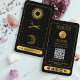 A beautiful black and gold celestial tarot sun and moon business card. A simple and professional way to introduce your business. Customise the business logo and QR Code and create your own business card. Social media icons included in this business card. Ideal business card for hair dressers, hair stylists, beauty salons and more.