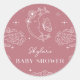 Add a celestial touch to your baby shower decor with our Tarot-inspired Baby Shower Stickers. Each sticker features a moon surrounded by butterflies, clouds, and twinkling stars against a dusty rose background, creating a magical and enchanting look. The white typography stands out beautifully, making these stickers perfect for use as cupcake toppers, favour labels, envelope seals, and more. Bring a touch of whimsy to every detail of your celebration with these charming stickers.