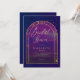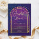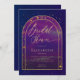 A stunning double gold boho arch frame beautifully highlights an inner watercolor painting of a starry night, featuring a deep purple and indigo overlay that looks like celestial waters with bright spots of lavender and vibrant traces of pink and yellow. This design showcases intricate celestial elements: the sun, the moon, the chalice, and twinkling constellations and stars. All set against a rich purple indigo and gold colour scheme (please note, the gold is a digital effect, not real foil!), this invitation perfectly blends astrology, horoscope, and zodiac vibes. It's a truly unique bridal shower invitation for a modern bride seeking an enchanted bridal shower or a boho celestial event. Set the tone for an unforgettable celebration filled with cosmic wonder!