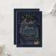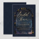 A stunning double gold boho arch frame beautifully highlights an inner watercolor painting of a starry night, featuring deep navy blue with enchanting traces of pink and yellow. This design showcases intricate celestial elements: the sun, the moon, the chalice, and twinkling constellations and stars. All set against a rich deep navy blue and gold colour scheme (please note, the gold is a digital effect, not real foil!), this invitation perfectly blends astrology, horoscope, and zodiac vibes. It's a truly unique bridal shower invitation for a modern bride seeking an enchanted bridal shower or a boho celestial event. Set the tone for an unforgettable celebration filled with cosmic wonder!