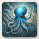 Celestial Waves: The Blue Octopus Fractal Art Coaster
