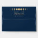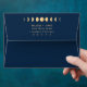Add a touch of cosmic elegance to your event with our Celestial Wedding envelopes. Immerse yourself in the enchanting simplicity of our design, reflecting the mesmerising magic of celestial bodies. Our trendy yet timeless design showcases a series of moon phases artistically rendered in gold on a striking navy blue backdrop. This touch of gold adds a hint of warmth and twinkling charm to the cool midnight blue base, further enhancing the inviting allure of the piece. The design maintains a minimalist approach, allowing the celestial elements to truly shine. You can easily personalise to suit your needs, ensuring that each piece echoes your unique style.