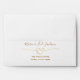 Simple, minimalist, romantic white and navy blue celestial wedding invitation 5x7 envelope with return address, gold rope heart and abstract star constellations inside.