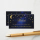 A navy and gold wedding enclosure card for a celestial wedding: golden text on a starry night background, surrounded by the moon and stars (that are faux gold foil). The title Website is written in an elegant calligraphic script.