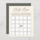 Elegant signature calligraphy "Baby Bingo" graphic, baby shower game sheet. Boho-chic illustrated whale, moon and stars with coordinating rustic grey colour backing.