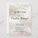 This stunning Baptism or Christening invitation features white celestial stars on a gold background with black text. Personalise this invitation with the details of the event.