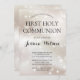 This stunning First Holy Communion invitation features white celestial stars on a gold background with black text. Personalise this invitation with the details of the event. This would also be beautiful as a Confirmation invitation.