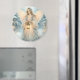 A serene celestial angel stands amid a quiet winter woodland, her soft wings glowing like dawn as she holds a warm lantern that gently lights the snow around her. Pale blues, creamy whites, and delicate golden sparks create an atmosphere of stillness and wonder, while intricate lace details on her gown add a tender, heirloom-like charm. This design brings together the peaceful hush of a snowy forest, the gentle symbolism of hope carried by a lantern’s glow, and the timeless grace of an ethereal guardian figure. Perfect for winter themes, spiritual sentiments, seasonal serenity, and cottage-style holiday imagery, this artwork offers a comforting presence that feels both nostalgic and enchanting. AI generated artwork.