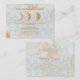 Elegant minimalist New Age theme faux gold glitter zodiac waxing Moon Wedding Details or Accommodations Flat Card with celestial icy blue mottled background & decorative font caramel typography details which can be easily customised with your own text options on both sides. Designed to co-ordinate with full wedding suite of paper stationery items & accessories to create a completely unified theme.