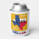 Can cooler designed for Celina, Texas, farm to market rd 1385 and the iconic Texas longhorn.  Red, white and blue colours throughout, for the patriotic look.