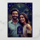 This stunning wedding photo card from the Celine Wedding Suite is a perfect blend of elegance and personalisation. The front design features a deep blue and purple watercolor background, adorned with shimmering real gold foil stars and accents, evoking the magic of a celestial night sky. On the back, include a cherished photo of the couple, framed by an elegant arch and a custom monogram. This design is ideal for couples looking to showcase their love story while maintaining a luxurious, romantic aesthetic. The real gold foil on the card front adds a touch of sophistication, making it perfect for weddings with might, celestial, or cosmic themes. Customise this keepsake to share your special moments in style.