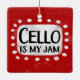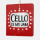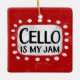 "Cello Is My Jam" is a fun text design with a white accent shape surrounded by white whimsical textured dots.