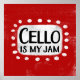 "Cello Is My Jam" is a fun text design with a white accent shape surrounded by white whimsical textured dots.