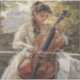 A young blonde woman in a flowing dress plays a cello gracefully, captured in soft, impressionistic brushstrokes evoking timeless elegance and musical passion.
