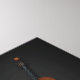 This illustration shows a cello with a bow lying across the strings on a black canvas. This artwork is part of a series of stringed instruments drawn by E. Motoyama in March 2023 and is available only from Mozartini shops.