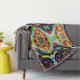 A quality printed throw has its advantages. This is a much finer weave throw than its loopier cousins, and though lighter, it is worth the investment for custom room accessorizing. The back is much prettier than the typical brown, and the fringe on the long sides very vivid, the selvage nicely done. Before photographing, I washed the throw in cold water, delicate, with a thicker woven throw the same size. On tumble dry low, this throw was dry in half the time as the other. This is a very practical quality if you use throws for furniture covers or to wrap up in frequently. The sleekness of the fabric makes it a great layer for accenting or protecting without the feeling of sitting on too much stuff. Perfect for napping or when you feel a light chill coming on. The color printing is beautiful and on this fabric, matched the design and color of my Photoshop image. This is an advantage for blending room fabrics and colors. The fringe on the short sides prints the colors from the design image and therefore varies from the side fringe. I streaked a white fractal line through the plaid pattern to give the illusion of weaving. This printed as crisp as an illusory thread, and put some white in the short side fringe, showing another advantage of print vs loomed- for artistic purposes, line lines, detail, and color integrity can be planned and preserved. My loomed throws have color limitations and more of a needlepoint texture. Print throws reproduce an exact image. The throw felt a little stiff straight out of the package, but this went away in the first delicate wash. Of course I searched the wash water for ink or bleeding and there was none.