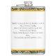 Well made flask, a little better than I had expected. Flask came in clear plastic box which gave it a nice presentation when I took it out of the zazzle packaging. Image is not printed on flask but on sticker. Don't know how this will hold up I haven't used it yet. This would make a Great gift! I plan to purchase more for friends! Cheers. I thought a little brighter than computer. Very crisp, writing wasn't