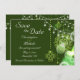 This enchanting Save the Date wedding announcement features a beautiful Celtic design with charming clovers and lights in shades of green and white. It's great for any wedding and perfect for Irish and St. Patrick's Day wedding celebrations. ^