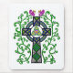 This Mousepad / Mousemat features a celtic cross surrounded by green leafy vines with purple flowers.