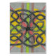 A design hand drawn with pen and colour pencils, producing an abstract pattern that replicates a loose celtic knot.