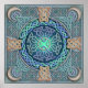Celtic knotwork in earthy tones of blue, green, and tan, centred around a blue-green 'eye'. A beautiful abstract design, celebrating the earth.