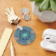 Celtic knotwork in earthy tones of blue, green, and tan, centred around a blue-green 'eye'. A beautiful abstract design, celebrating the earth.