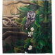 Green Man with a cute owl friend sitting on a branch. Celtic knot work in stone behind them on a wall