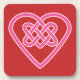 A set of red hard plastic coasters with a simple pink Celtic knot heart.