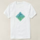 A white t-shirt for men with a blue-green Celtic knot with border, in a diamond shaped design.