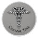 Double snake caduceus. Image inspired by celtic knot design. Vector icon with custom colour. Custom background colour. Custom text.