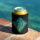 Chill with this Celtic can cooler with a single blue-green Celtic knot diamond design against a black background.